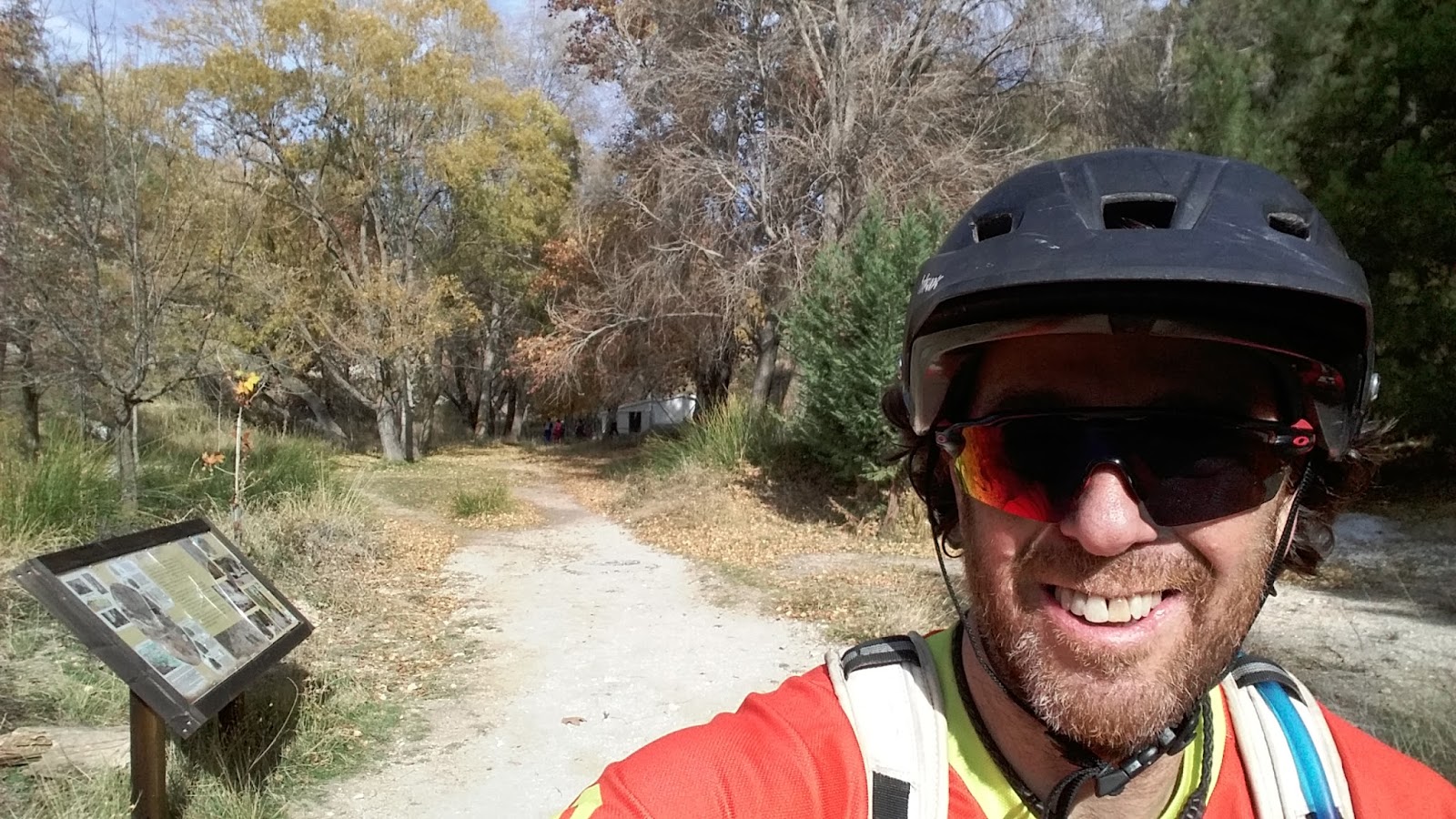 Seguimos el sendero, y veo que las cuevas las han taponado…Seguimos pedaleando hasta llegar al final, y entonces nos vamos a la derecha. Es un camino bueno para invierno, porque el sol te va calentando, pero es que no hace ni pizca de frío, kopónnnn!!!