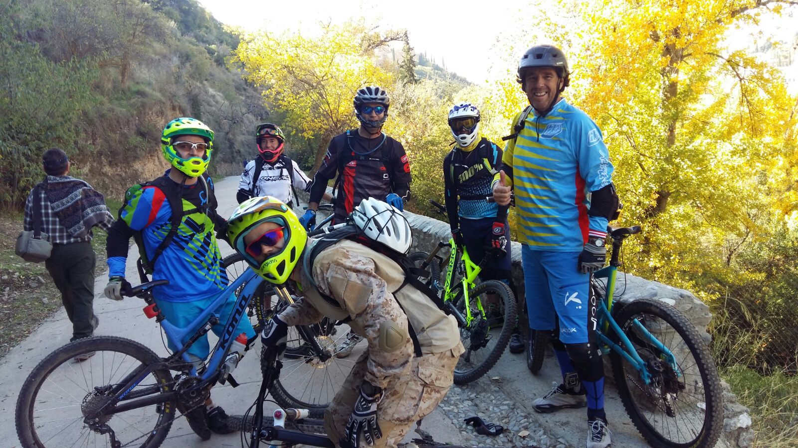 Una vez que acabamos todos, seguimos bajando otro poco, antes de meterle a una subida. Es corta y dura, pero yo no le tiro, no tengo ganas; otros como Hugo, Zorro, Cecílio y Pablo si que le tiran.