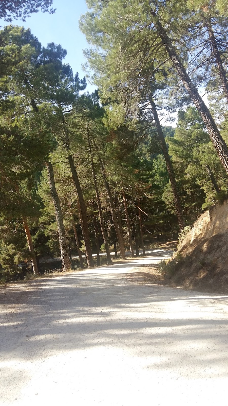Nos vestimos de romanos, y vamos en su busca, en busca del «Jabalí». Si hasta ahora hemos venido sin parar de charlar, subiendo, cuando comenzamos a bajar se hizo el silencio, solo se oía el cascabelillo que siempre me acompaña, y las ruedas trazando las curvas, o pisando piñas. Por cierto tuvo gracia que durante la bajada, una piña lanzada por la rueda trasera de Javier, pego en la de delante mía y se coloco delante, rodando, y no me dejaba adelantarla, fue muy cómico. Adelantar a una piña en movimiento no es ni fácil ni recomendable, jajajaja.