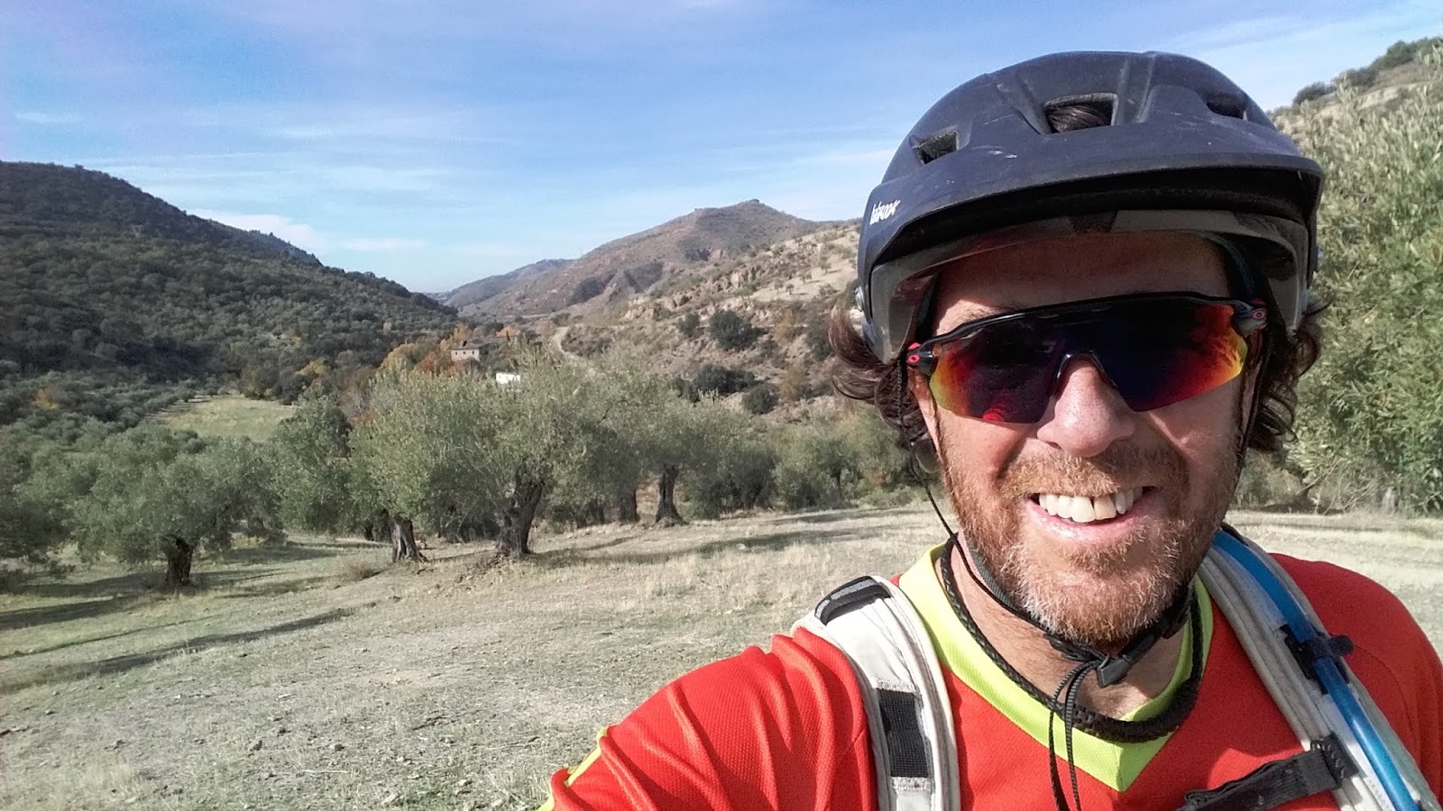 Desde Huetor bajamos al Cortijo Cortés. Me vinieron los recuerdos del día que volvimos (Javier y yo) por aquí, después de bajar desde Majalijar. Se me estropeó el tubeless y no pude repararlo. Volví a patas desde aquí a Granada. Hoy, va todo perfecto y gracias a esa experiencia llevo de todo y por su orden en la mochila jajajaja. Pero además, seguimos impresionándonos de los colores del campo…