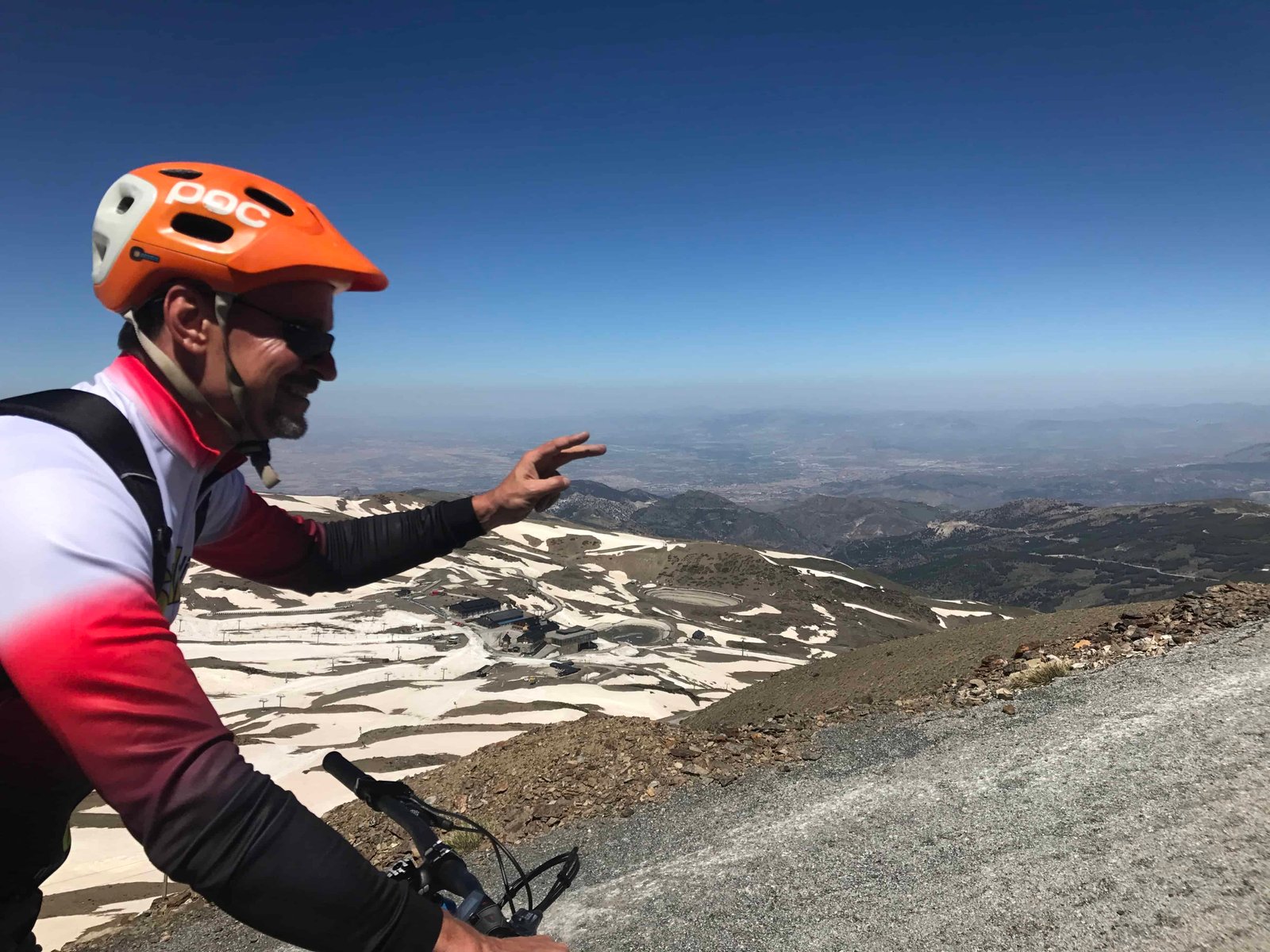 Una vez recuperados del esfuerzo y tras inmortalizar con nuestros móviles nuestra gesta, pusimos rumbo a Granada en un descenso vertiginoso, haciendo que Björn en algunas curvas limara en más de una ocasión las puntas de sus zapatillas contra el asfalto.